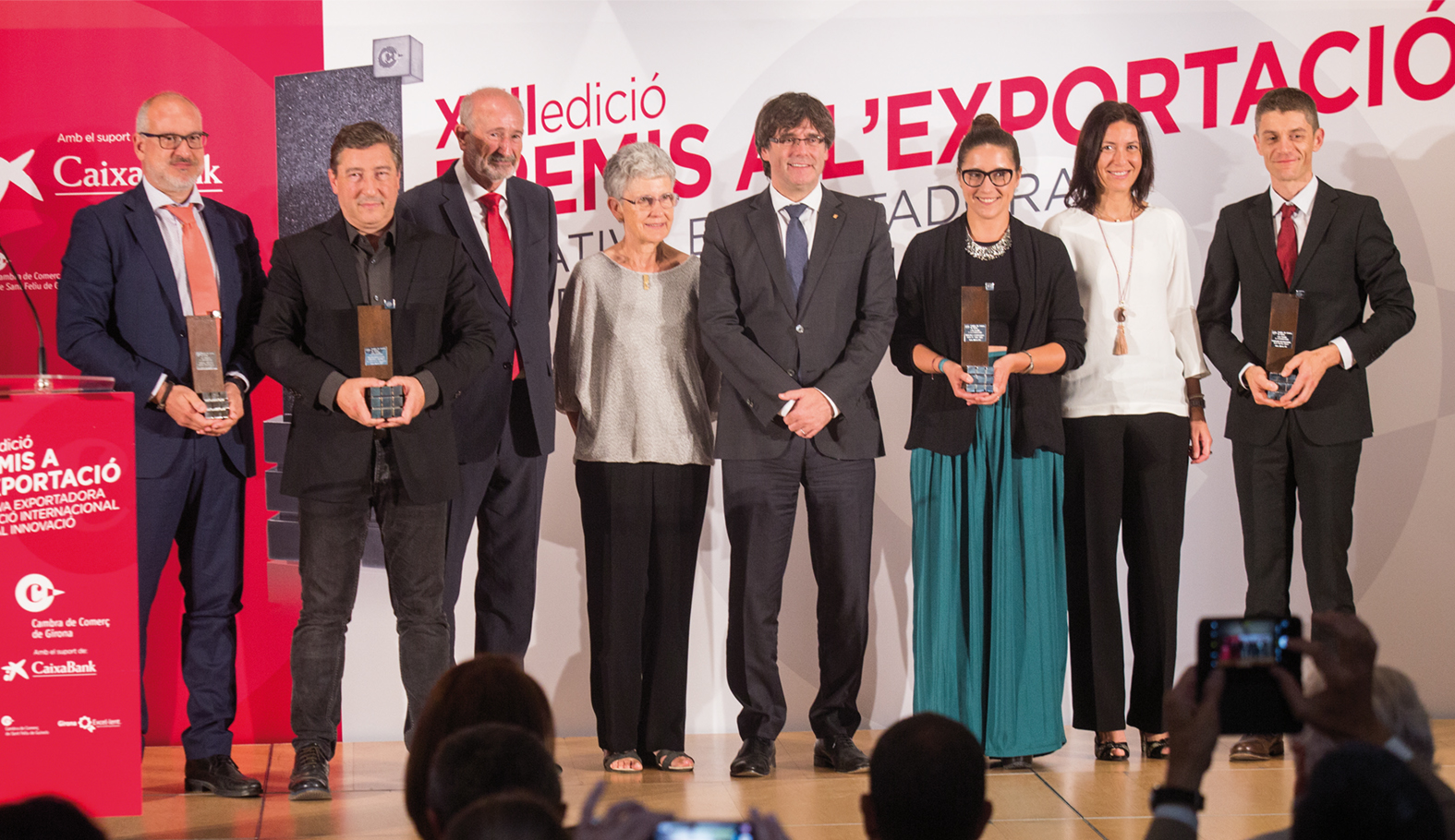 La Cámara galardonó Sant Aniol, Olot Meats Group y Enprom durante la gala anual de los Premios a la Exportación. La corporación reconoce así a las tres empresas por su iniciativa exportadora, por la proyección internacional y por su innovación. Además también se hizo un reconocimiento especial al Celler de Can Roca por su ayuda en la internacionalización de las comarcas de Girona. La XXII edición de los Premios a la Exportación, organizada por la Cámara de Comercio de Girona en el Auditorio, contó con la clausura del presidente de la Generalitat, Carles Puigdemont. El jurado ha valorado un total de 15 empresas de la demarcación que han destacado por sus cifras de exportación o por las innovaciones que han introducido en sus procesos de internacionalización.