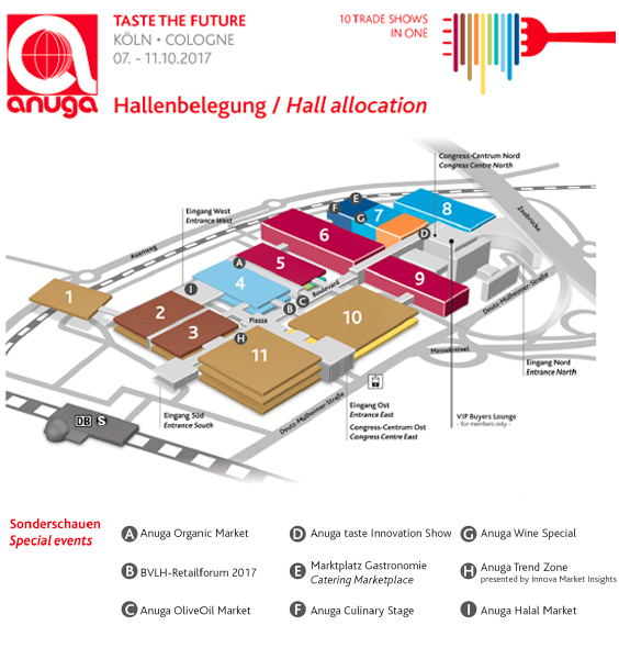 El president de l’Associació Federal de la Indústria Alemanya de l’Alimentació (BVE), Wolfgang Ingold, ho resumeix de la manera següent: “El creixement en la indústria de l’alimentació és només possible avui dia a través de l’exportació. Ja ara, un de cada tres euros de benefici s’aconsegueix a l’estranger. L’Anuga és la més gran i més important fira monogràfica dedicada als bebies negocis d’exportació de la indústria alemanya de l’alimentació. També aquest any, els fabricants alemanys de productes alimentaris han pogut demostrar de forma impressionant que poden oferir alguna cosa més que productes per al plaer del paladar, són líders en qualitat, seguretat i varietat! capdavantera, les innovacions juguen un paper central. Cap altre sector és tan innovador com nosaltres: anualment apareixen al mercat alemany més de 40.000 productes nous.